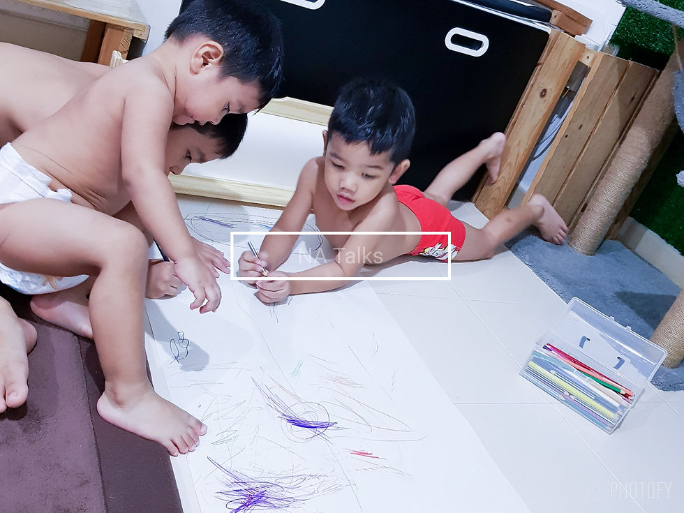 "Oh. We cannot colour on the floor anymore. Okay, got it!"
